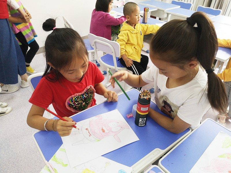 本次授課主要圍繞“海綿寶寶和派大星”進(jìn)行簡筆卡通繪畫。通過講解示范讓小朋友們知道具體的繪畫步驟,在小朋友繪畫創(chuàng)作的同時進(jìn)行指導(dǎo)修改。不一會兒,一幅幅精美的作品就呈現(xiàn)在大家的眼前了。