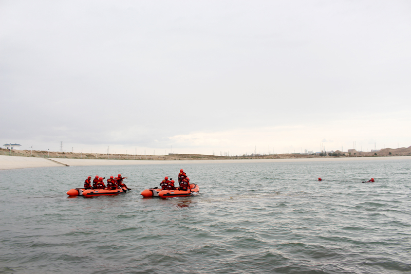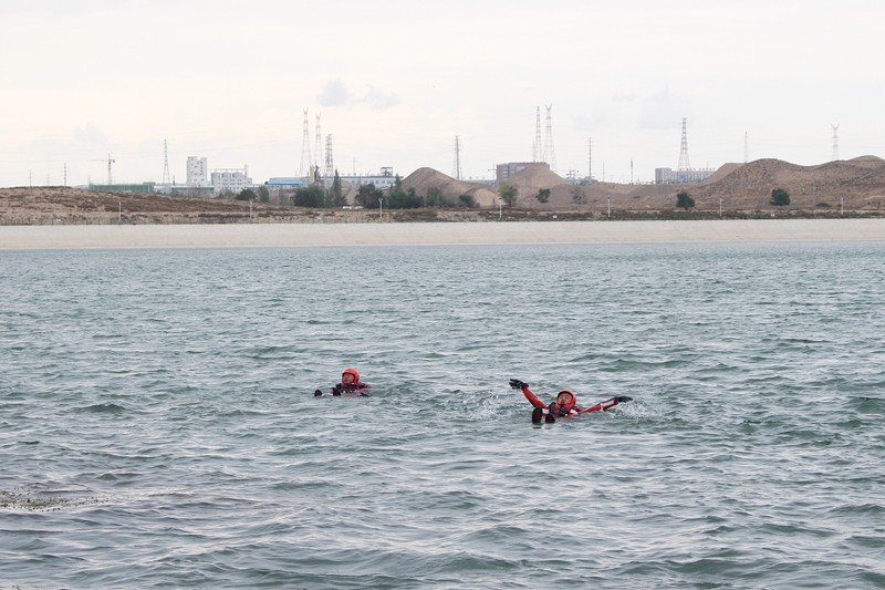 演習地點選在集團在建項目——蘭州新區(qū)南部生態(tài)綠化灌溉七號湖單體湖調(diào)蓄工程水域。演習在陰雨中開展,這樣的天氣使得演習項目更加貼近實戰(zhàn),同時也增加了難度。