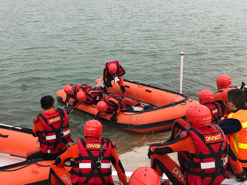 全體參訓隊員克服惡劣天氣、水溫不均及連續(xù)作戰(zhàn)等困難,綜合運用戰(zhàn)術戰(zhàn)法,指揮高效、反應迅速、迎險而上的精、氣、神和戰(zhàn)斗作風,使我公司學習人員深受啟發(fā),備受鼓舞。通過現(xiàn)場學習,供排水公司工作人員詳細了解了舟艇組裝及下水、編隊行駛、槳板救援等專業(yè)的水域救援科目和技巧,表示,一定將學習到的救援經(jīng)驗及做法,帶回去讓大家共同學習、共同參考,為水務集團下一步面對防汛應急救援任務做準備。