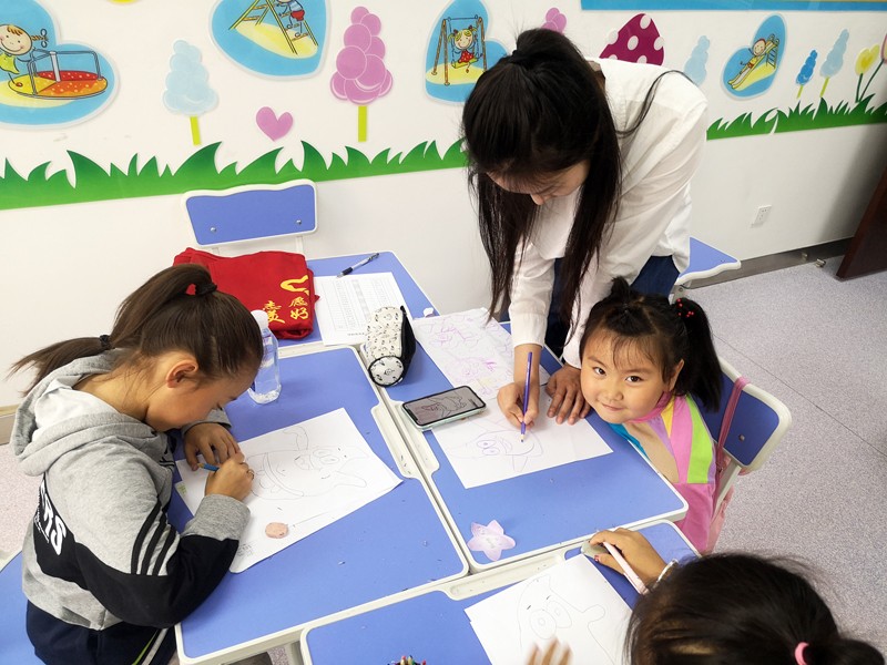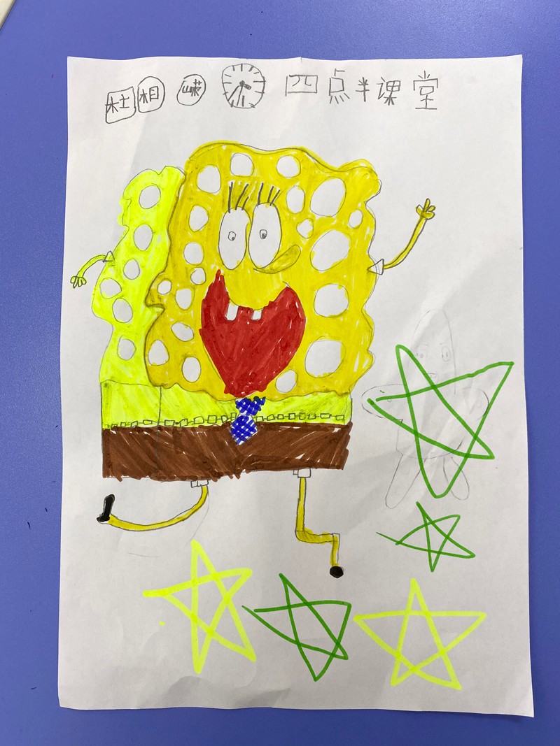 本次授課主要圍繞“海綿寶寶和派大星”進(jìn)行簡筆卡通繪畫。通過講解示范讓小朋友們知道具體的繪畫步驟,在小朋友繪畫創(chuàng)作的同時進(jìn)行指導(dǎo)修改。不一會兒,一幅幅精美的作品就呈現(xiàn)在大家的眼前了。